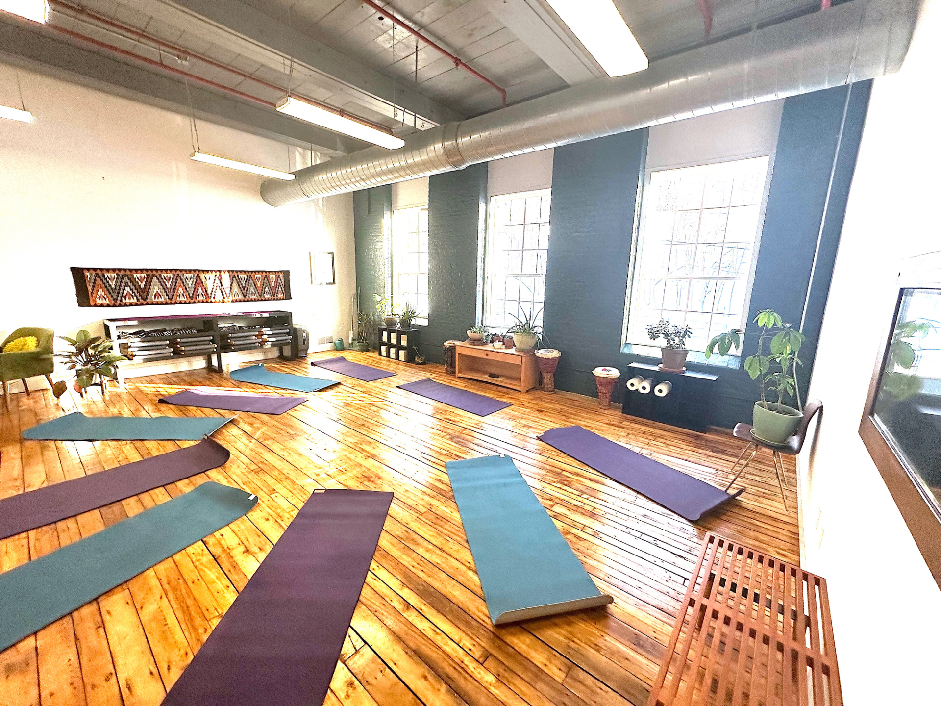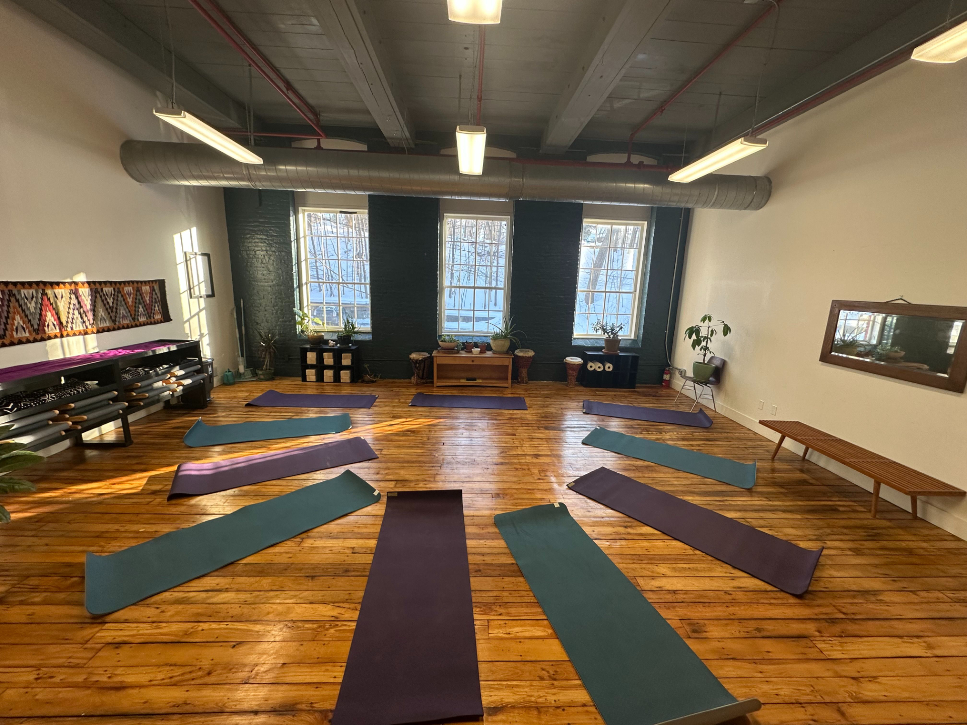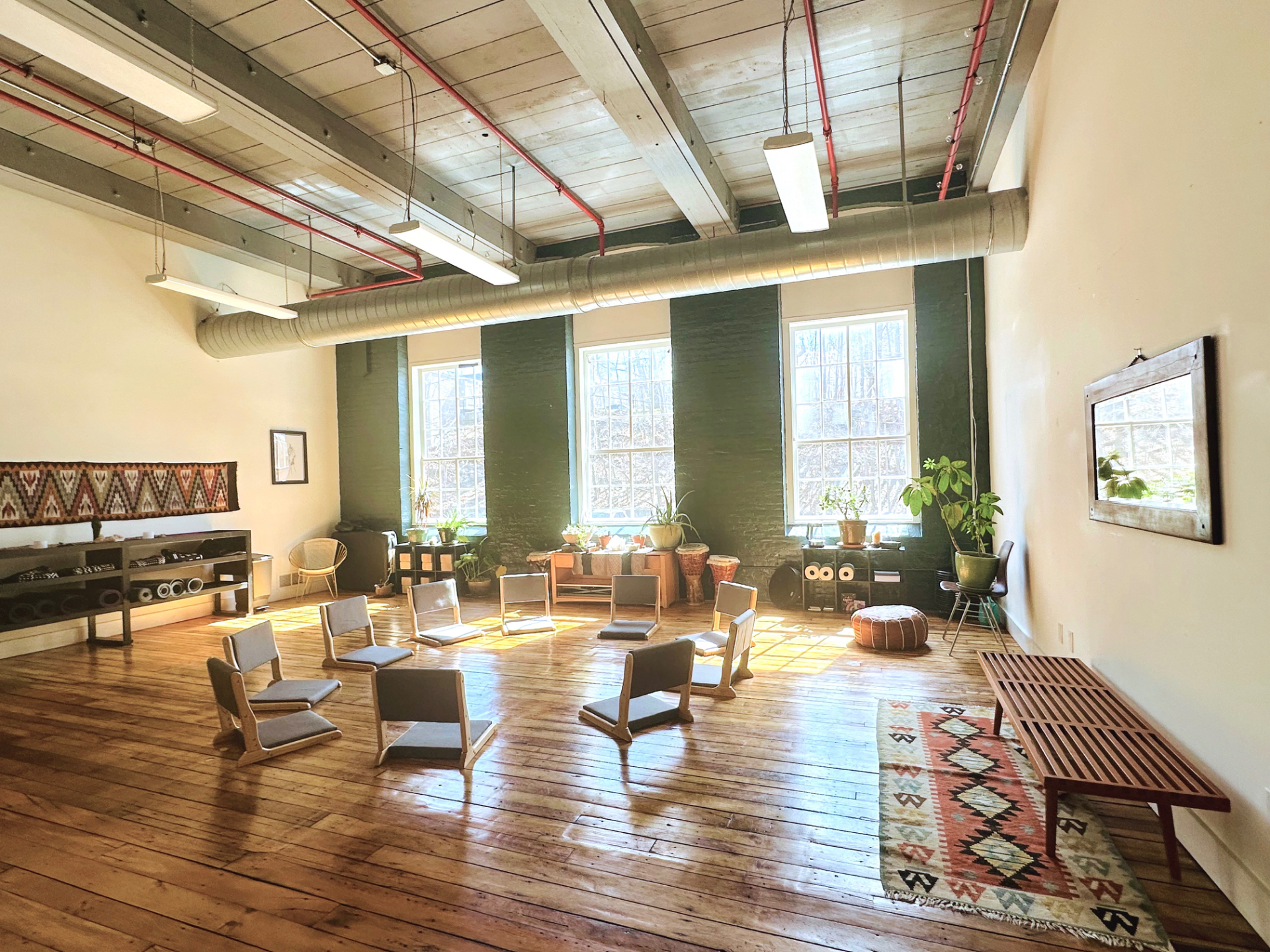 A luminous, open sanctuary designed for large group ceremonies, workshops, and transformative events—where community magic comes alive. Fully equipped with mats, blocks, bolsters, floor & regular height seats & blankets.