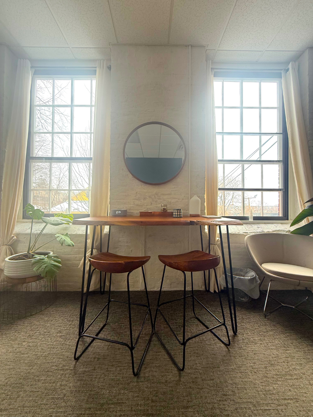 All spaces include: massage table, sound machine, tissues, Wi-Fi, clock, trash bags, cleaning supplies,and inspiring, intentional vibes.
